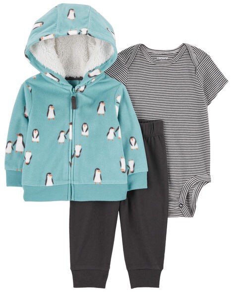 slide 3 of 3, Carter's Baby Penguin 3-Piece Fleece Cardigan Set Green 12M, 1 ct