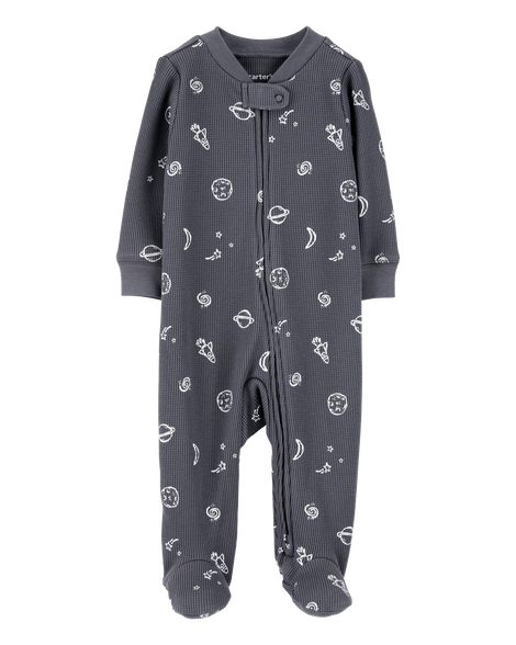 Carter's Baby Space Print 2-Way Zip Waffle Knit Sleep & Play - Grey Grey 6M