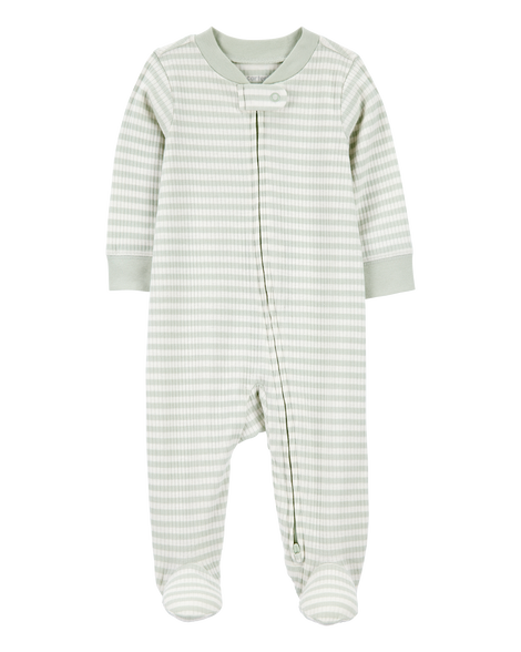 Carter's Baby Striped 2-Way Zip Ribbed Sleep & Play Pajamas - Green/White Green/White NB