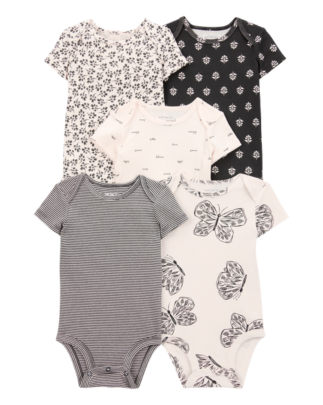 Carter's Carters 5-Pack Striped Butterfly Short-Sleeve Cotton Bodysuits - Black/White Black/White 18M