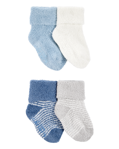 Carter's Carters Baby 4-Pack Chenille Foldover Cuff Booties - Blue/White Blue/White 3-12