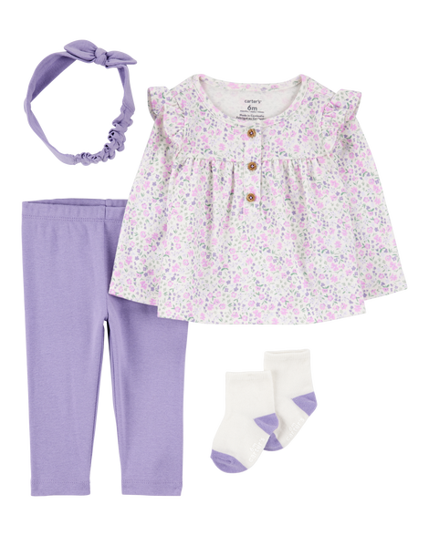 Carter's Carters Baby 4-Piece Floral Outfit Set - Purple - Purple Purple 9M