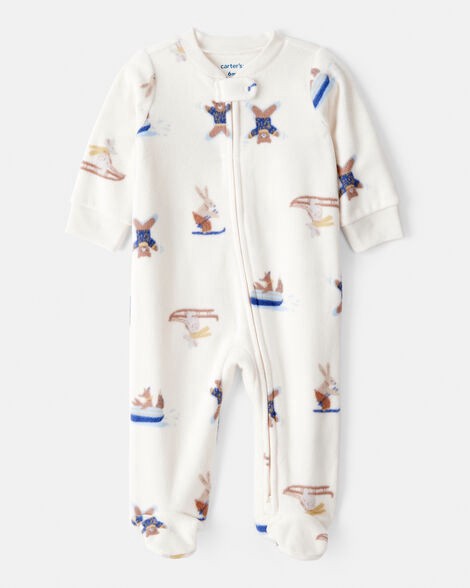 Carter's Carters Baby Boy Animal Ski Print Loose Fit Long-Sleeve Sleep & Play Pajamas - Cream Cream 9M