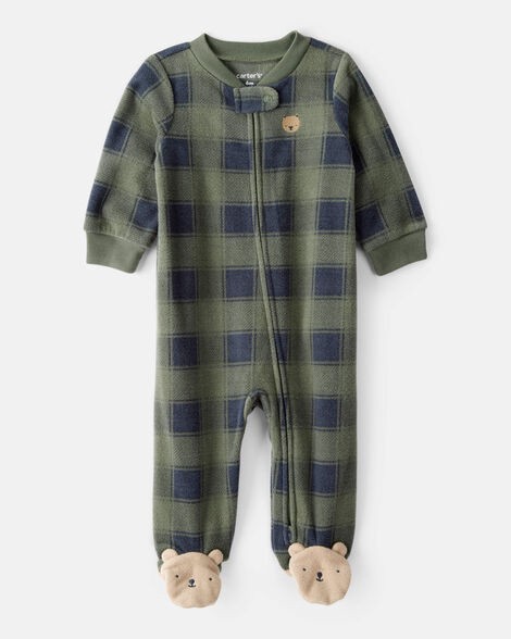 Carter's Carters Baby Boy Bear Plaid Print Loose Fit Long-Sleeve Sleep & Play Pajamas - Green Green NB