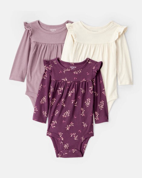 Carter's Carters Baby Girl 3-Pack Long-Sleeve Multipack Bodysuits - White/Purple Cream/Purple 6M
