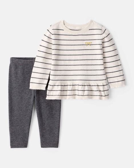 Carter's Carters Baby Girl Bow Striped Long-Sleeve Tee & Pant Set - White/Grey White/Grey 18M