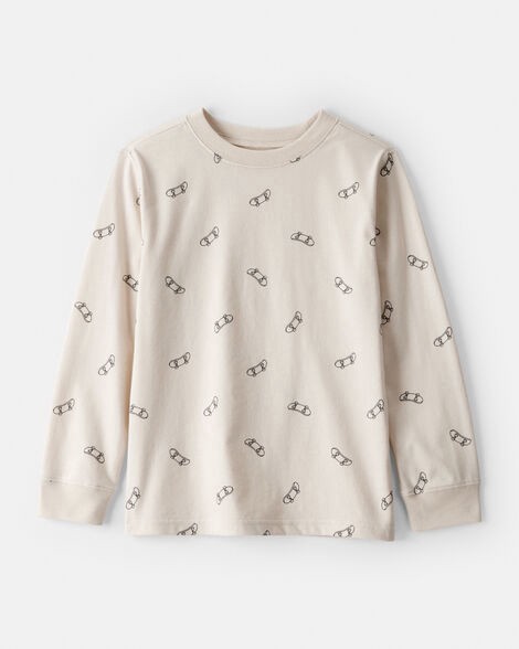 Carter's Carters Boys Skateboard Print Long-Sleeve Graphic Tee - Brown Beige S
