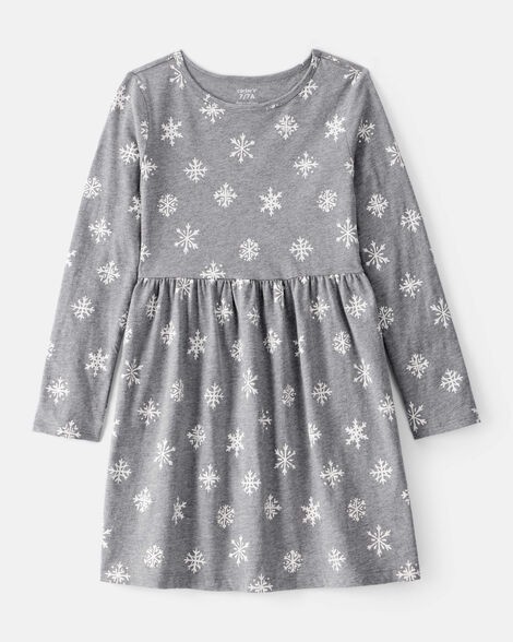 Carter's Carters Girls Snowflake Print Cotton Long-Sleeve Dress - Grey Grey 6-6X