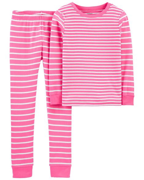 slide 3 of 3, Carter's Carters Kid 2-Piece Striped Snug Fit Cotton Pajamas Pink 7, 2 pc