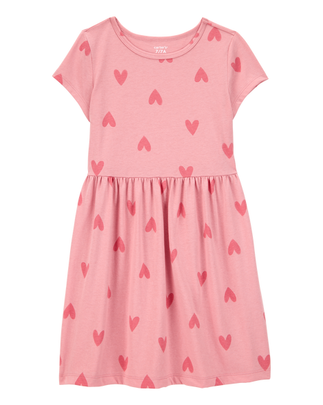 Carter's Carters Kid Heart-Print Short-Sleeve Dress Pink 12