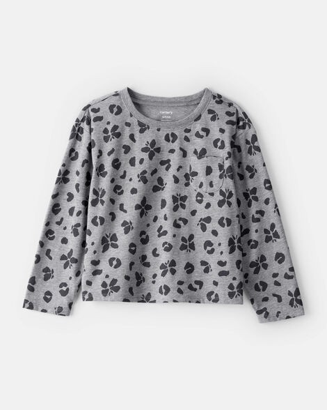 Carter's Girls Butterfly Leopard Pocket Tee - Grey Grey XL