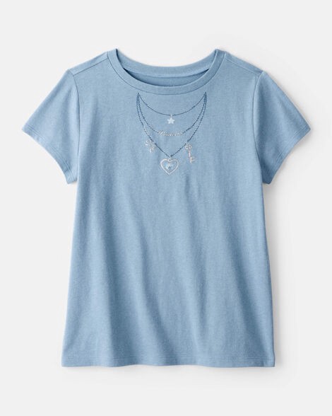 slide 3 of 3, Carter's Girls Charm Necklace Short-Sleeve Graphic Tee - Blue Blue XS, 1 ct