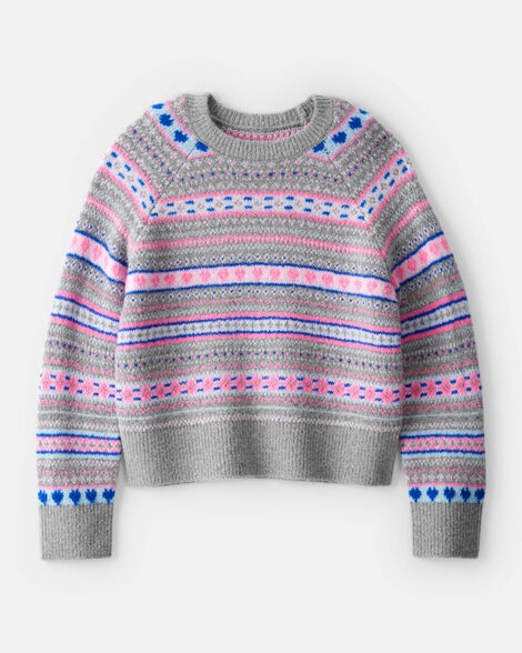 Carter's Girls Fairisle Sweater - Grey/Pink Multi 4
