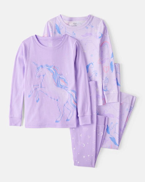 Carter's Girls Unicorn Print 100% Cotton Long-Sleeve 4-Piece Pajamas - Purple Purple 6