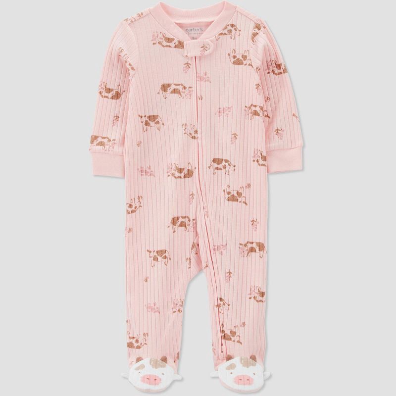 Carter's Just One You® Baby Girls' Cows Footed Pajama - Pink/Brown 9M