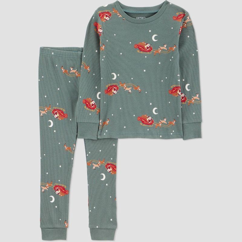 Carter's Just One You® Toddler 2pc Christmas Santa's Sleighs Long Sleeve Cotton Pajama Set - Green 18M