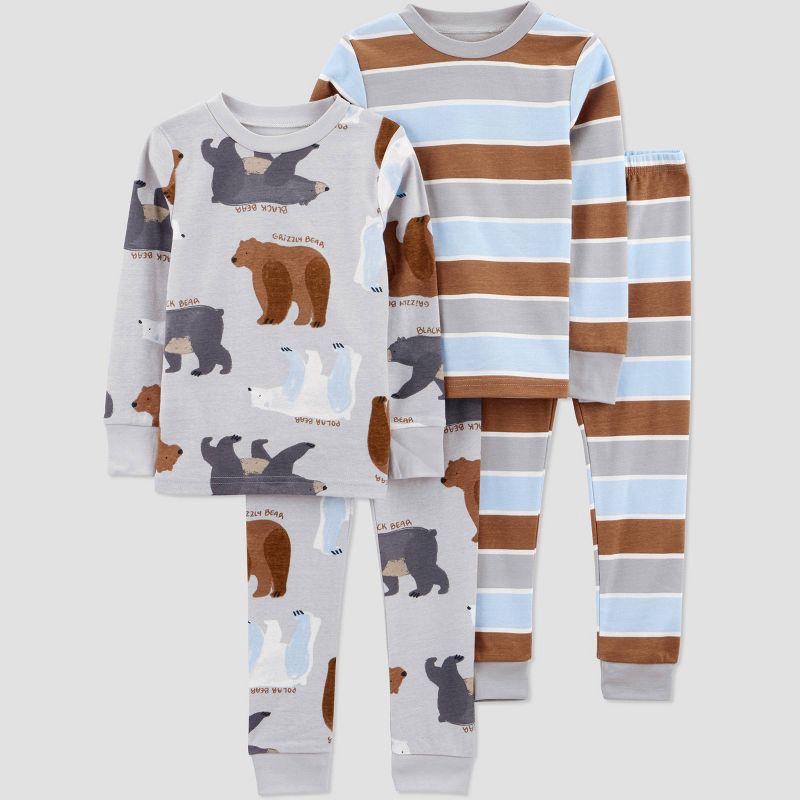 Carter's Just One You® Toddler Boys' 4pc Bears & Stripes Long Sleeve Cotton Pajama Set - Brown/Gray 2T