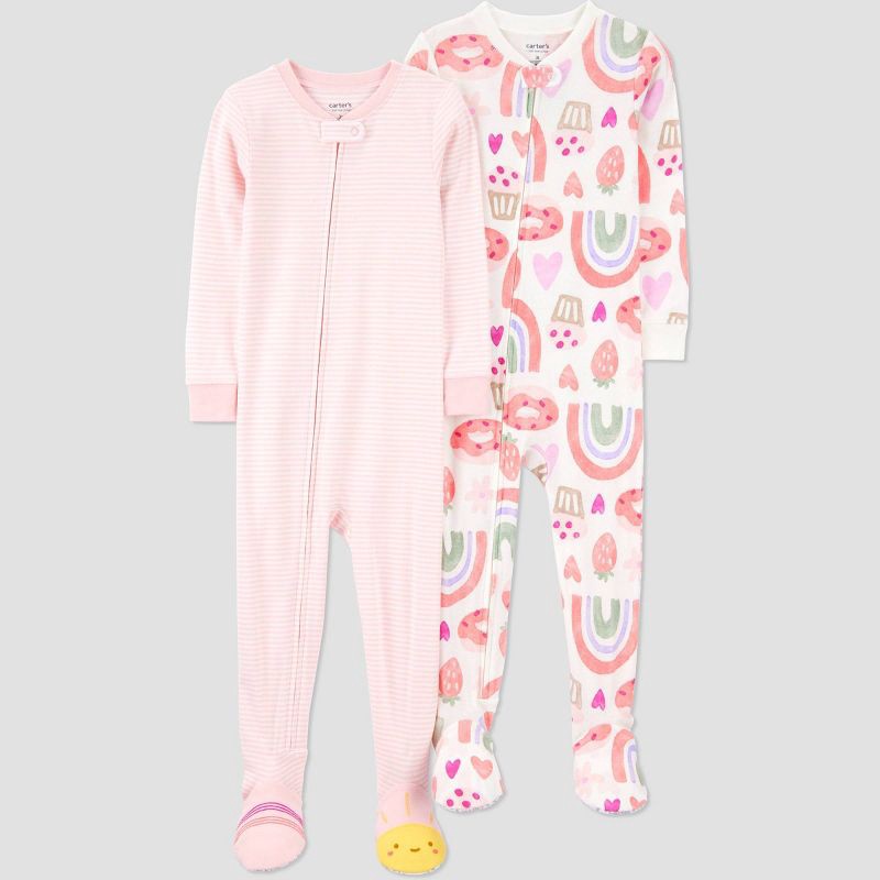 slide 2 of 5, Carter's Just One You® Toddler Girls' 2pk Cotton Long Sleeve Sweets and Rainbow Footed Pajama - Pink 5T, 2 ct
