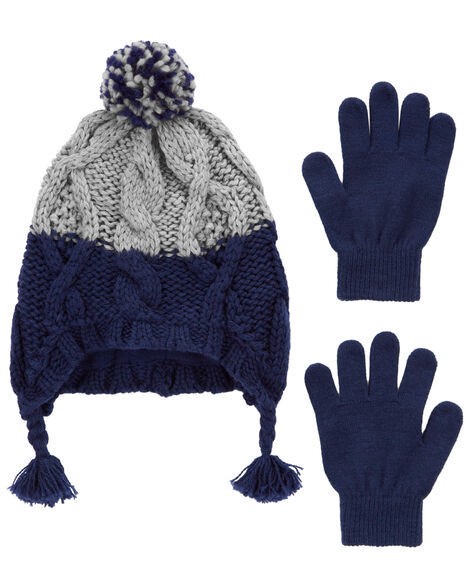 Carter's Kid 2-Pack Pom Hat & Gloves Set Navy/Grey 8-14