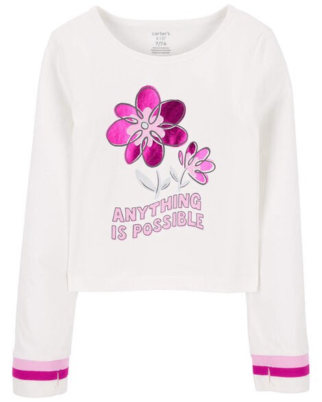 slide 2 of 3, Carter's Kid Anything Is Possible Floral Long-Sleeve Tee Ivory 4, 1 ct