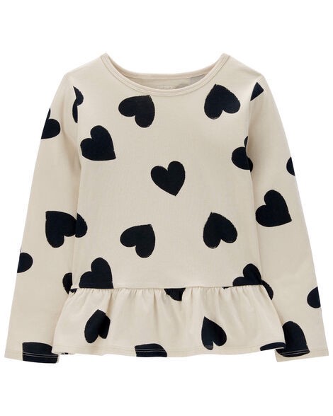 Carter's Kid Heart Peplum Jersey Tee Khaki M