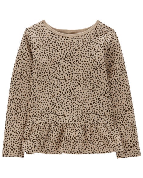 slide 1 of 2, Carter's Kid Leopard Print Peplum Top Brown S, 1 ct