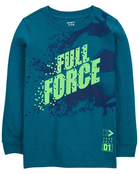 Carter's Kid Soccer Cotton Blend Long-Sleeve Tee - Green Turquoise 6