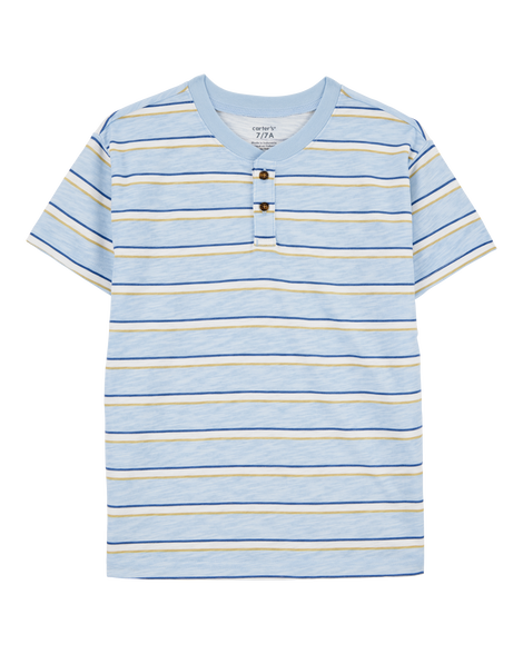 Carter's Kid Striped Knit Short-Sleeve Henley Blue 14