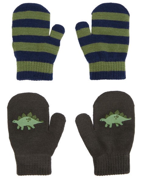 Carter's Toddler 2-Pack Dinosaur Gripper Mittens Green 2T4T