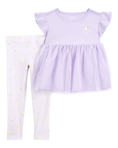 Carter's Toddler 2-Piece Lemon Tulle Top & Legging Set Purple 5T