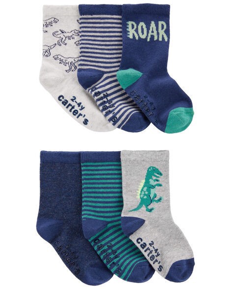 Carter's Toddler 6-Pack Dinosaur Socks Navy/Grey 2T4T