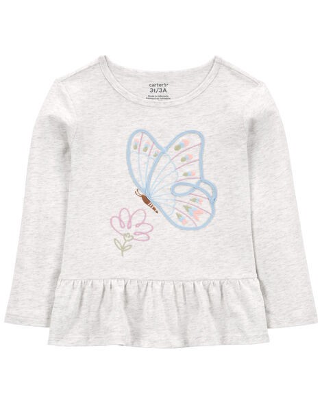 Carter's Toddler Butterfly Jersey Long-Sleeve Peplum Top - Grey Grey 4T