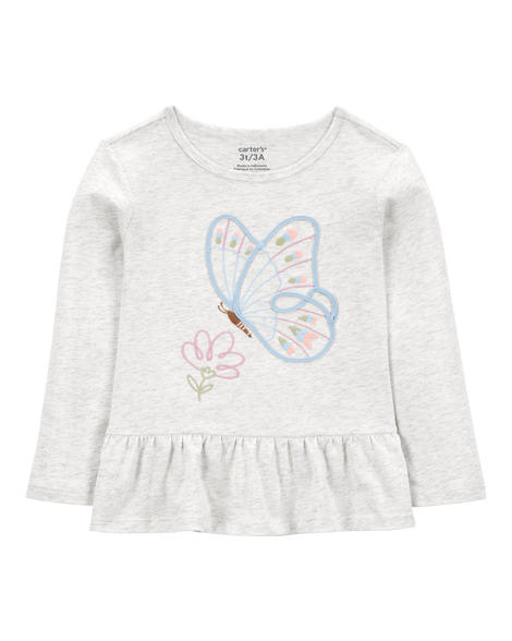 Carter's Toddler Butterfly Jersey Long-Sleeve Peplum Top - Grey Grey 5T