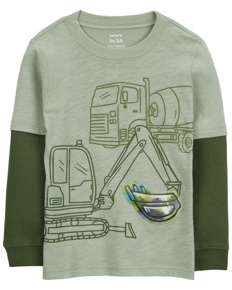 Carter's Toddler Construction Cotton Blend Long-Sleeve Tee - Green Green 3T