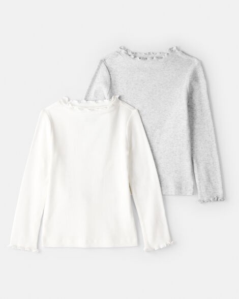 Carter's Toddler Girl 2-Pack Mock Neck Long-Sleeve Tops - White Grey/White 4T