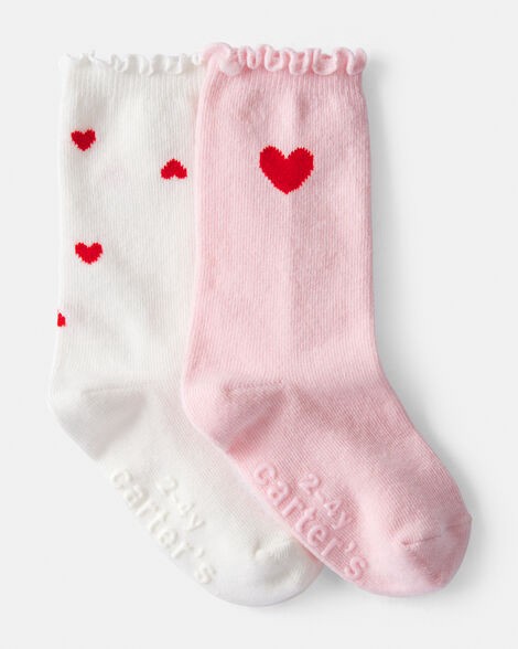 Carters Toddler Girl Heart Crew Socks - Pink/White White 2T4T