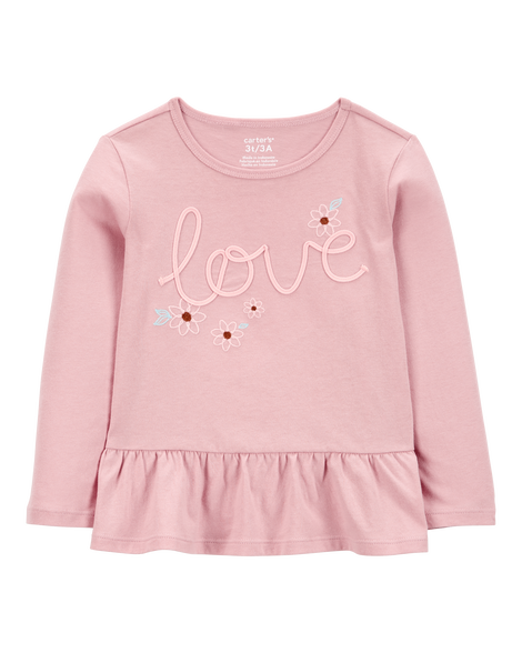 Carter's Toddler Love Long-Sleeve Peplum Top - Pink Pink 5T