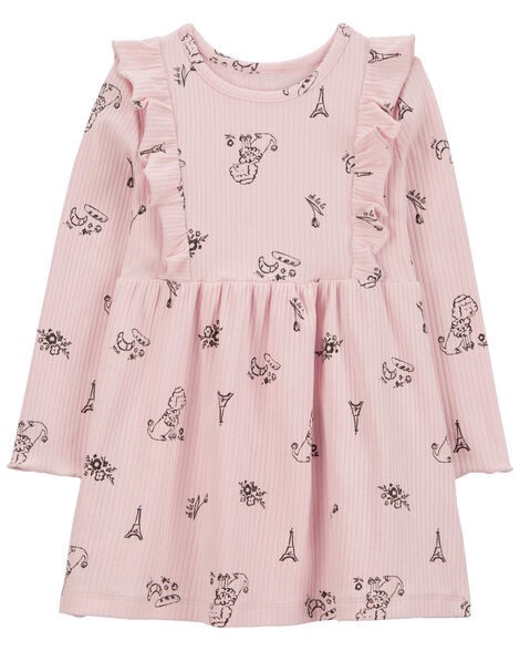 slide 3 of 3, Carter's Toddler Paris-Print Long-Sleeve Dress - Pink Pink 3T, 1 ct