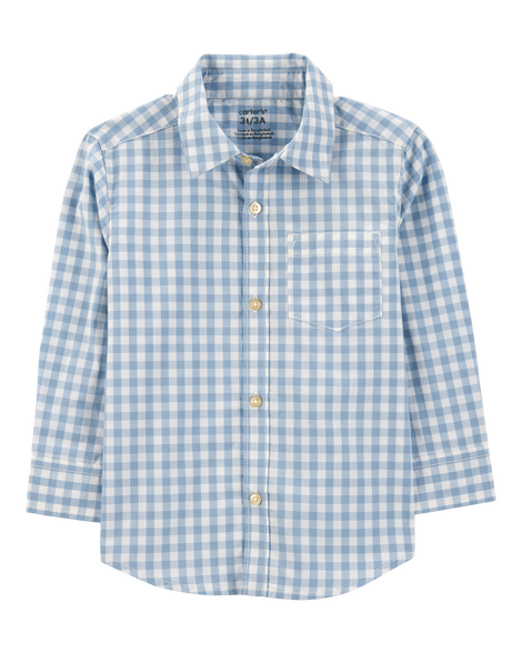 Carter's Toddler Plaid Woven Long-Sleeve Button-Down Shirt - Blue Blue 4T