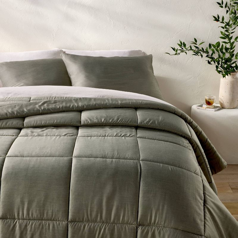 Redefine your bedroom with the inviting warmth and chic style of this Rayon from Bamboo Comforter Set from Casaluna™. The lightweight comforter features a solid shade with a quilted box-stitched surfa…