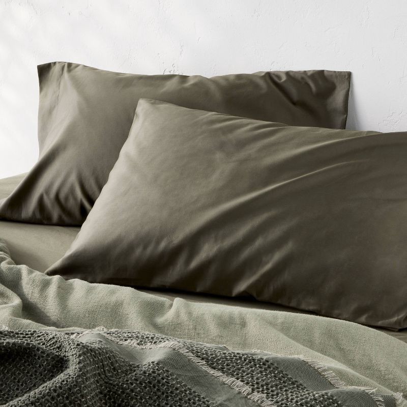 slide 2 of 4, King 600 Thread Count Sateen Pillowcases Olive Green - Casaluna™, 1 ct