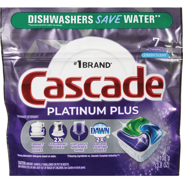 Cascade actionpacs dishwasher detergent powers away greasy residue for sparkling dishes in one easytouse pac actionpacs combine the scrubbing power of cascade and the greasefighting power of dawn to l…