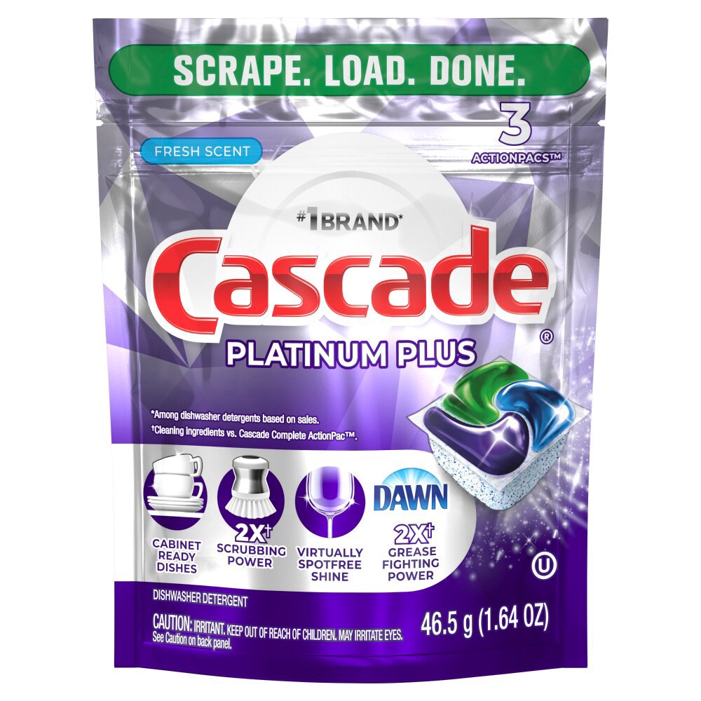 Cascade Platinum Plus Dishwasher Pods, Dishwasher Detergent, Dish Detergent Soap, Fresh, 3 Count