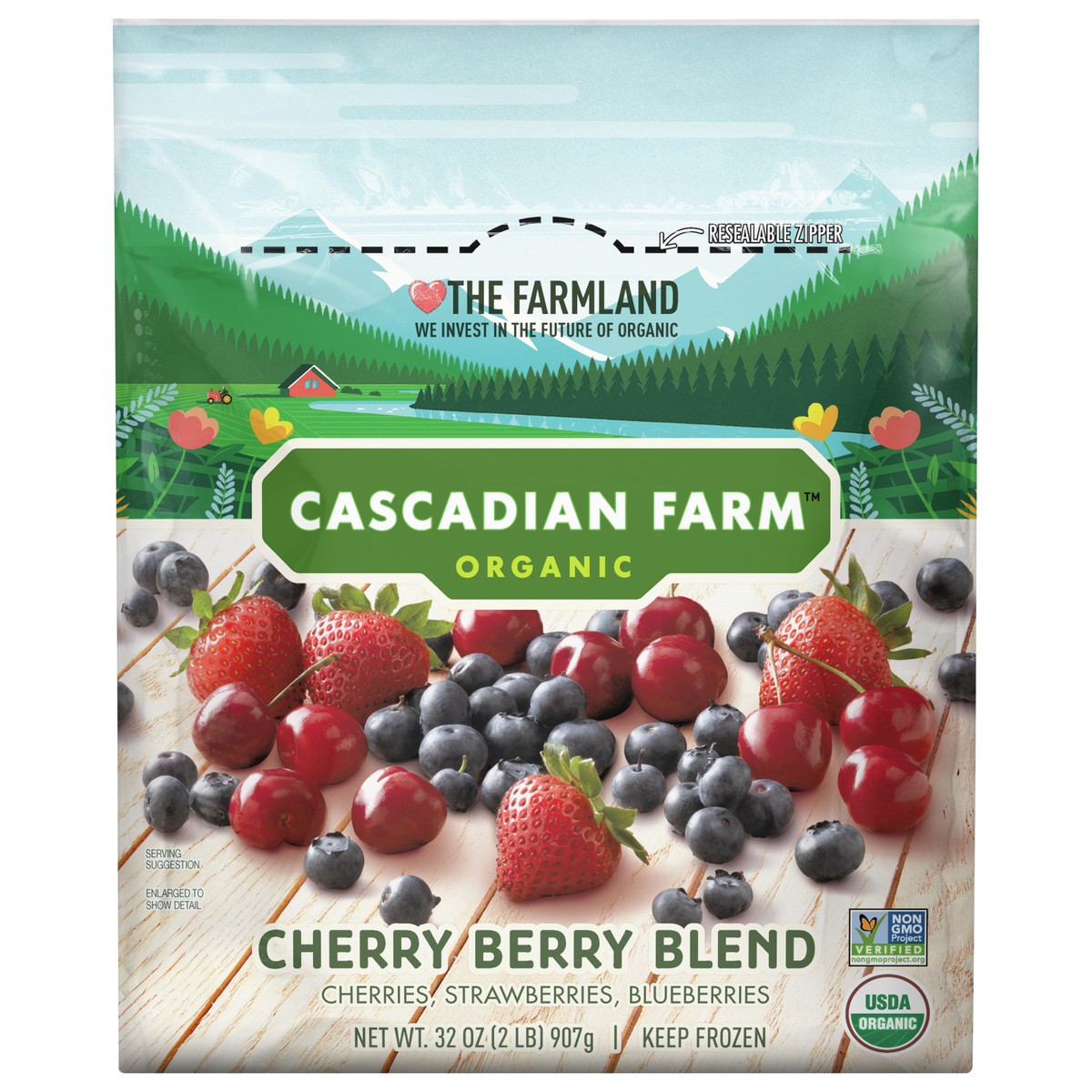 Organic Cherries, Organic Strawberries, Organic Blueberries.