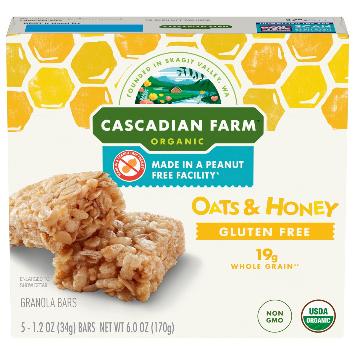 Cascadian Farm Organic Oats and Honey Granola bars come loaded with delicious whole grain oats and golden honey. With 19 grams of whole grain and 3 grams of fiber per serving, this hearty organic gran…