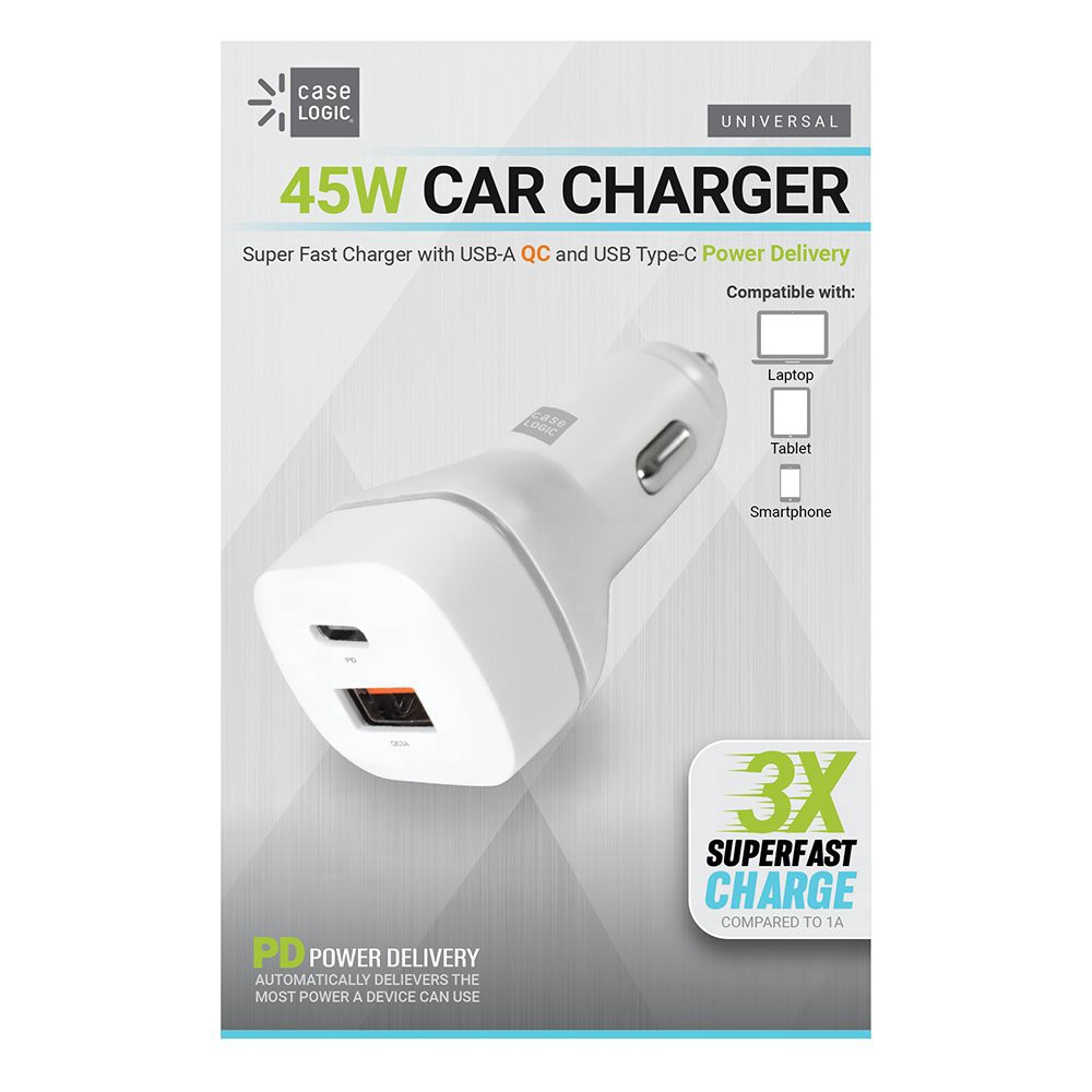 Case Logic 45-Watt Dual Port Car Charger - White
