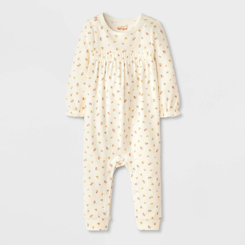 Freshen up your baby's wardrobe with the textural style of the Long-Sleeve Waffle Romper from Cat & Jack™. This long-sleeve romper features waffle-knit detailing, smocking, and elastic at the front, e…