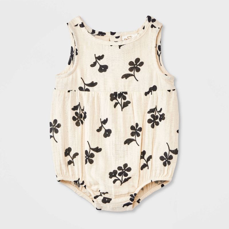 Baby Girls' Floral Tank Romper - Cat & Jack™ Cream 6-9M