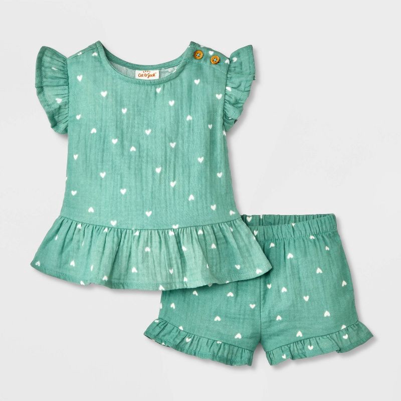Dress your little one comfortably with this Ruffle Sleeve Floral Gauze Shorts Set from Cat & Jack™. This set includes a blouse and a bloomer, both made of 100% cotton for breathability and comfort. Th…