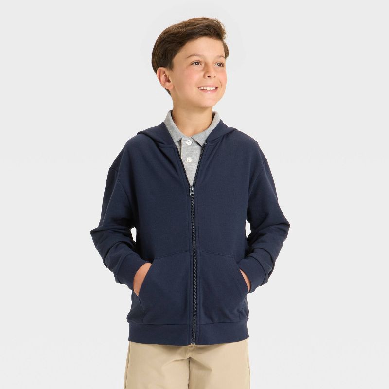 Elevate their casual wardrobe with this French Terry Zip-Up Hoodie Uniform Sweatshirt from Cat & Jack™. This uniform sweatshirt is made from cotton-recycled polyester blend French terry fabric for coz…